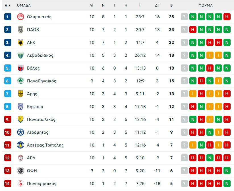 Ο Ολυμπιακός είναι και πάλι πρωτοπόρος στην Superleague μετά από την 10η αγωνιστική, ύστερα από τη νίκη του με 3-1 επί της Κηφισιάς, σε συνδυασμό με την ήττα του ΠΑΟΚ με 2-1 από τον Παναθηναϊκό.
