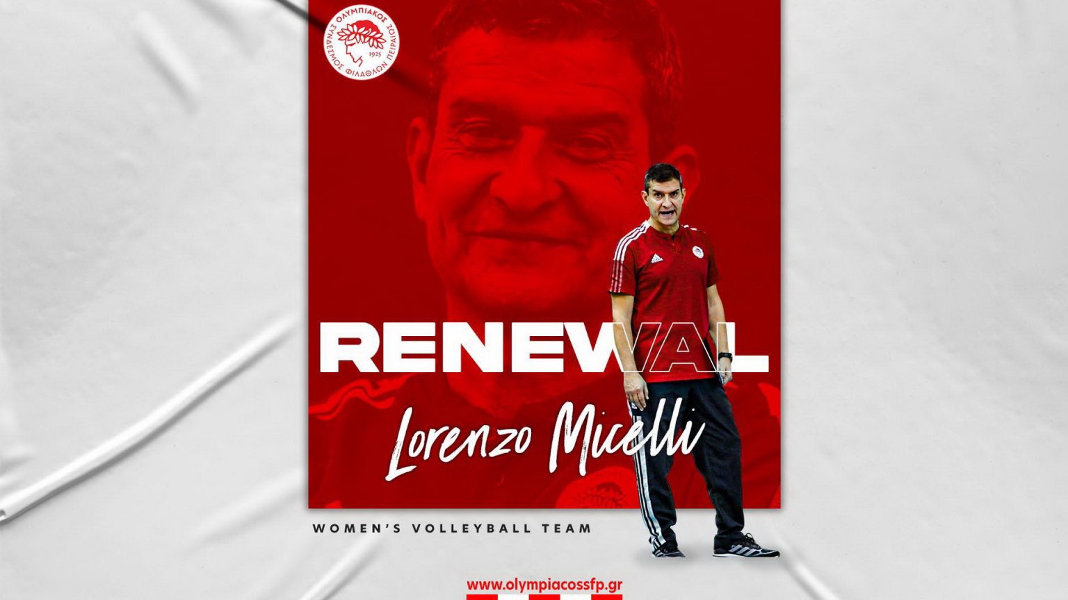 Στον πάγκο της γυναικείας ομάδας βόλεϊ θα παραμείνει και την νέα σεζόν ο Λορέντζο Μιτσέλι, καθώς ο Ολυμπιακός ανακοίνωσε την ανανέωση της συνεργασίας του με τον Ιταλό προπονητή.