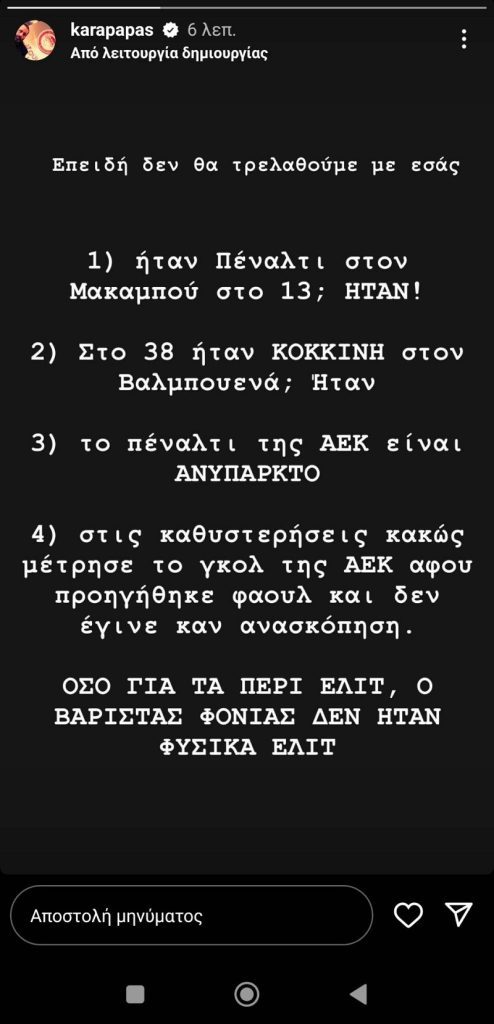 Ο Κώστας Καραπαπάς με ανάρτησή του στα social media σχολίασε τα όσα συνέβησαν στην αναμέτρηση του Ολυμπιακού με την ΑΕΚ.