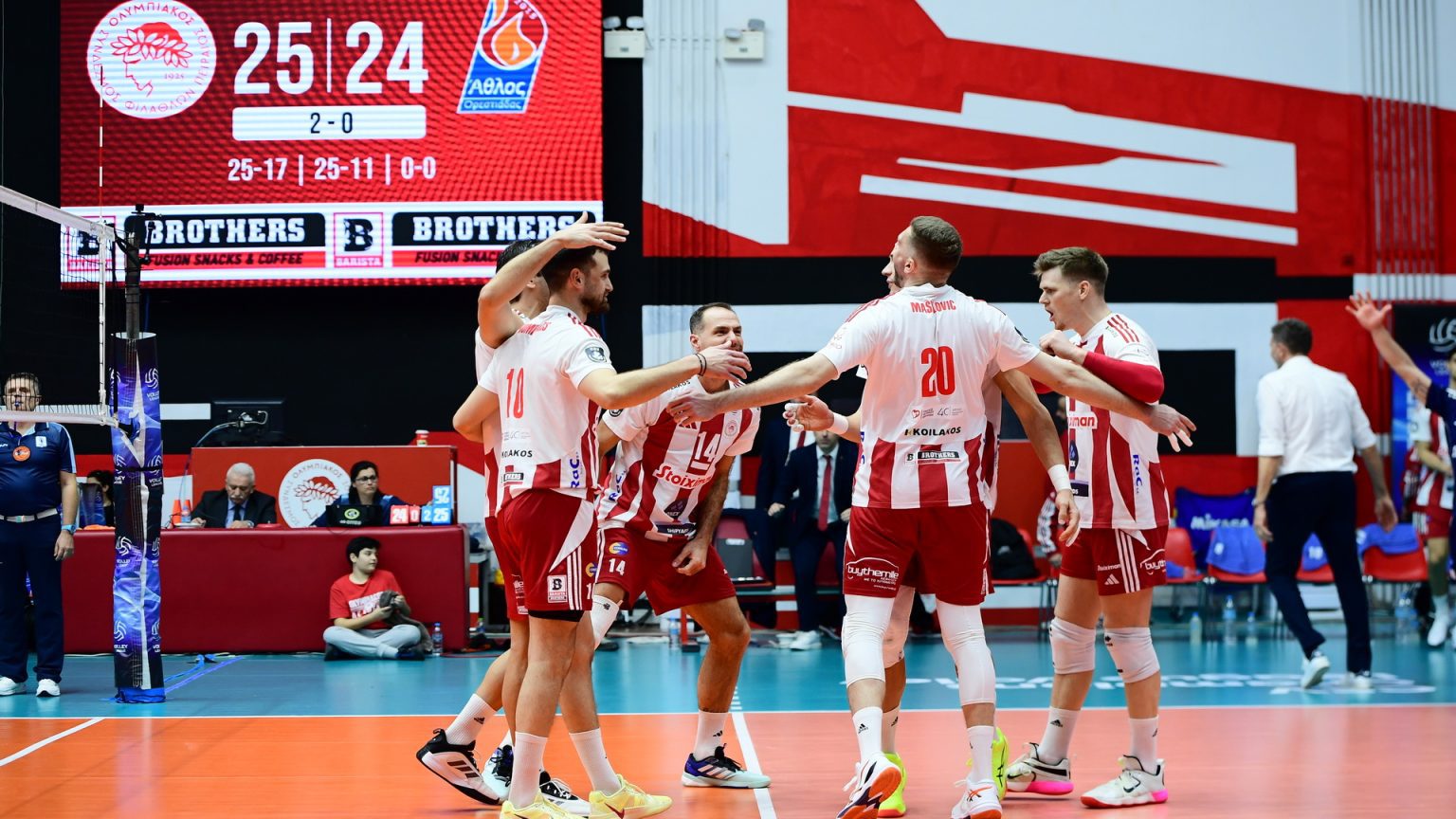 ΟΛΥΜΠΙΑΚΟΣ ONEX (Αντρέα Γκαρντίνι): Πέριν 10 (8/21 επ., 2 άσοι, 58% υπ. – 50% άριστες), Παπαγγελόπουλος 5 (4/8 επ., 1 μπλοκ), Κουμεντάκης 8 (6/14 επ., 2 άσοι, 17% υπ. – 17% άριστες), Τράβιτσα 2 (1/3 επ., 1 άσος), Ατανασίεβιτς 13 (13/16 επ.), Μασούλοβιτς 11 (7/7 επ., 1 άσος, 3 μπλοκ) / Κωνσταντινίδης (λ.50% υπ. – 50% άριστες), Χασμπάλα