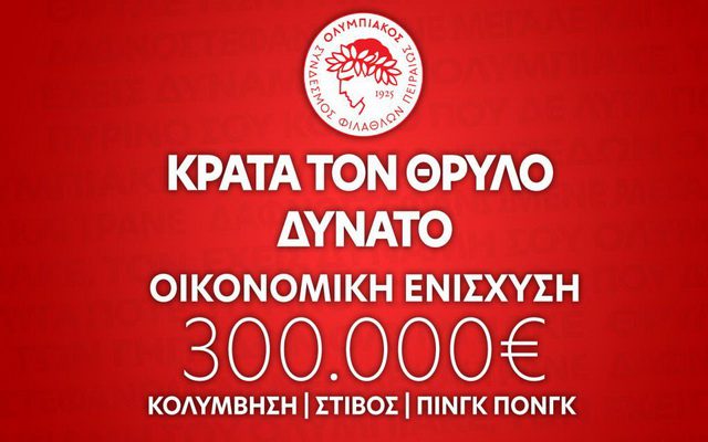 Ελπίζουμε και επιθυμούμε σφόδρα την επιτυχή ολοκλήρωση της ενέργειας, που θα αποδείξει για μια ακόμη φορά ότι ο ΟΛΥΜΠΙΑΚΟΣ ΣΥΝΔΕΣΜΟΣ ΦΙΛΑΘΛΩΝ ΠΕΙΡΑΙΩΣ έχει δύναμη τον πύρινο του κόσμο.