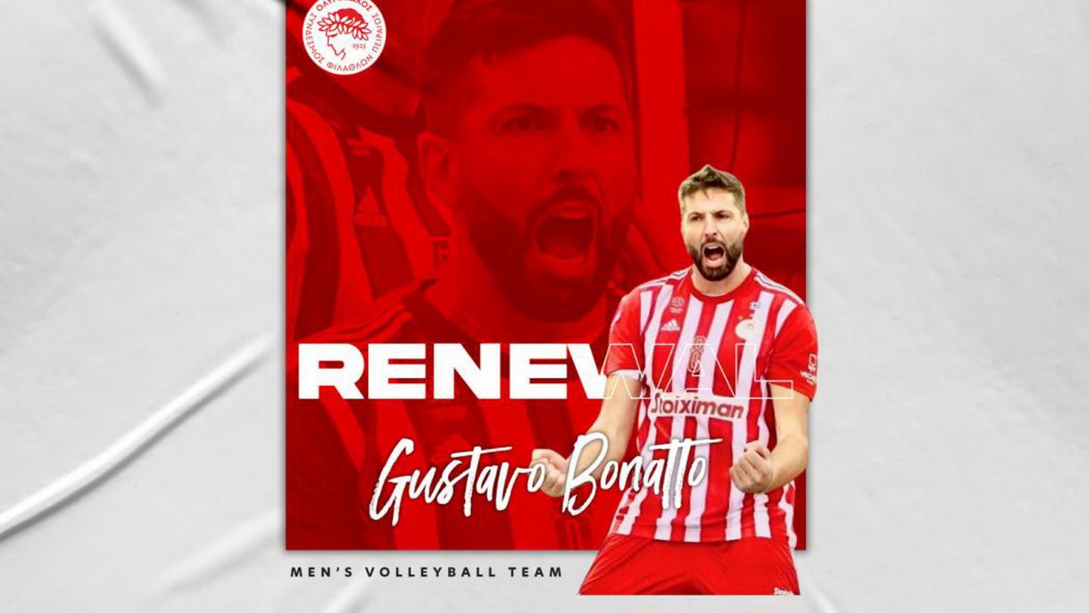 Ο ΟΛΥΜΠΙΑΚΟΣ Σ.Φ.Π. ανακοινώνει την ανανέωση της συνεργασίας του με τον Γκουστάβο Γκουαζέλι Μπονάτο (Γκουσταβάο). Ο Βραζιλιάνος κεντρικός υπέγραψε το νέο του συμβόλαιο και παραμένει στο ρόστερ της ομάδας βόλεϊ Ανδρών του συλλόγου.