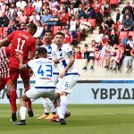 Μόλις στο 6′ ο Ολυμπιακός άνοιξε το σκορ όταν ο Ροντρίγκες επιχείρησε σουτ, με την μπάλα να κοντράρει και να αλλάζει πορεία, όμως φτάνει “συστημένη” στο κεφάλι του Ελ Αραμπί ο οποίος με τη μία κάνει μία “μαγική” επαφή, αλλάζοντας πορεία στη μπάλα, με τον Λοντίγκιν να μην μπορεί να αντιδράσει και τους ερυθρόλευκους να πετυχαίνουν το 1-0.