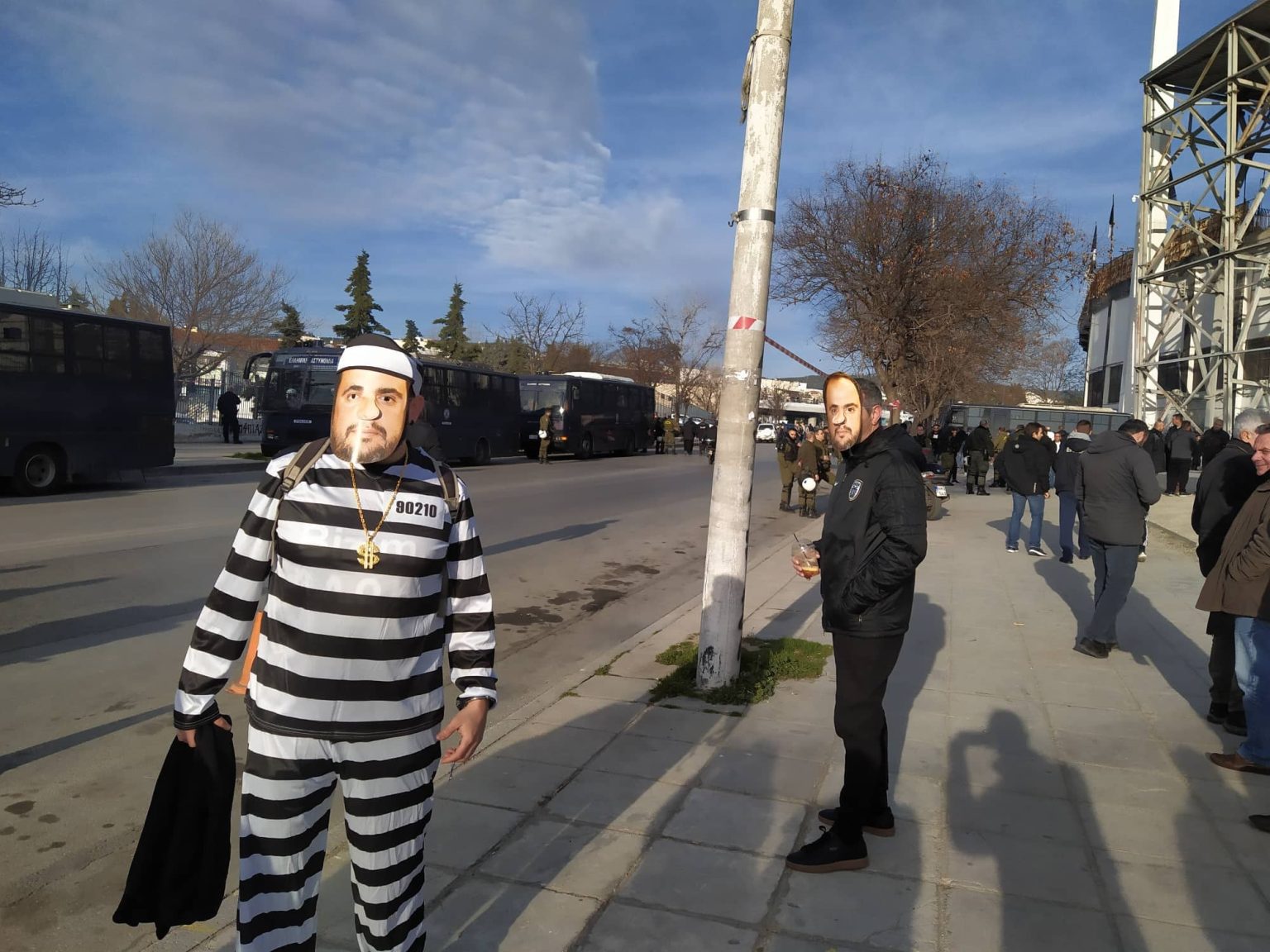 Αρκετοί “φίλοι” του ΠΑΟΚ πήγαν στην Τούμπα για να δουν το ντέρμπι με τον Ολυμπιακό, φορώντας μάσκες με το πρόσωπο του Βαγγέλη Μαρινάκη.
