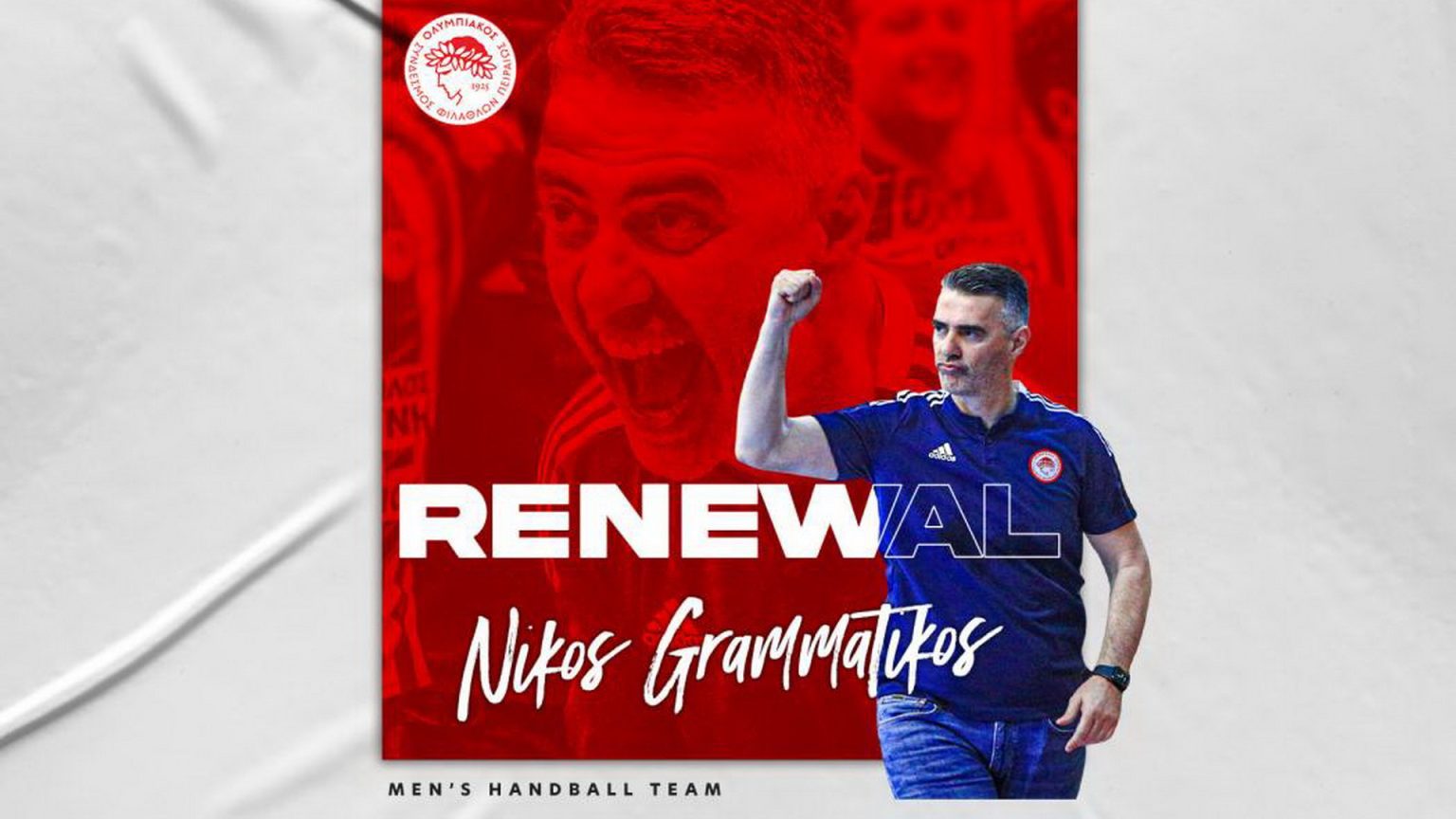 Ο ΟΛΥΜΠΙΑΚΟΣ Σ.Φ.Π. ανακοινώνει την ανανέωση της συνεργασίας του με τον Νίκο Γραμματικό. Ο Έλληνας προπονητής υπέγραψε το νέο του συμβόλαιο και παραμένει στην τεχνική ηγεσία της ομάδας χάντμπολ του συλλόγου.