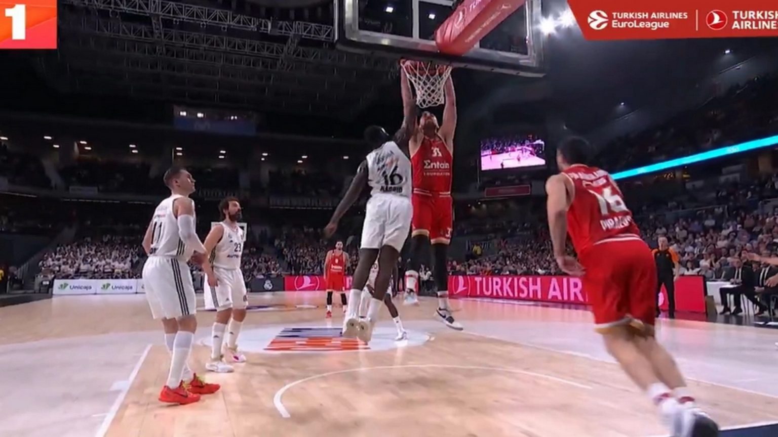 Συγκεκριμένα, στο νο1 βρίσκουμε το εντυπωσιακό πόστερ κάρφωμα του Νίκολα Μιλουτίνοβ, μετά από ασίστ του Κώστα Παπανικολάου, με… θύμα τον Οσμάν Γκαρούμπα, από τον θρίαμβο του Ολυμπιακού στην έδρα της Ρεάλ Μαδρίτης.
