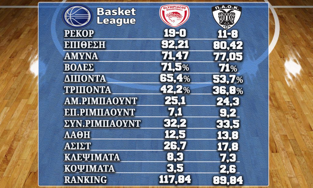 Ο Ολυμπιακός μέσα από το 19-0 που έχει κάνει ως τώρα στο Πρωτάθλημα, απέχει τρία βήματα από το απόλυτο στην κανονική περίοδο, κάτι που έχει συμβεί μόνο τρεις φορές στην ιστορία της Basket League. Από το Ολυμπιακό του 2010-11 και τον Παναθηναϊκό του 2017-18 που έκαναν το 26/26 στην κανονική περίοδο και έφτασαν στον τίτλο χάνοντας από δύο παιχνίδια πλέι οφ.