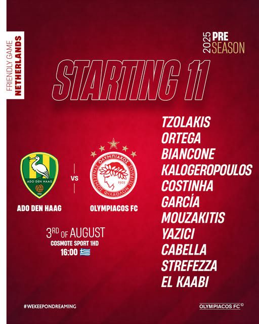 Ο Ολυμπιακός αντιμετωπίζει την Ντεν Χάαγκ σε φιλικό αγώνα και ο Χοσέ Λουίς Μεντιλίμπαρ έκανε γνωστή την ενδεκάδα της ομάδας του.