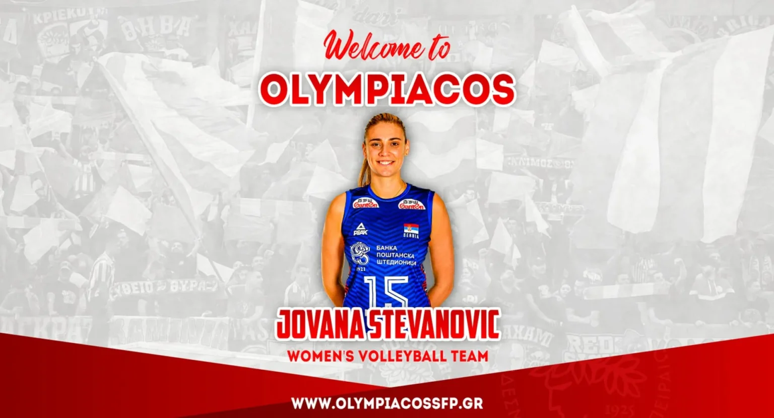 Ο ΟΛΥΜΠΙΑΚΟΣ Σ.Φ.Π. ανακοινώνει την έναρξη της συνεργασίας του με την Γιοβάνα Στεβάνοβιτς. Η διεθνής Σέρβα κεντρική (ημ. γέννησης 30/6/1992, 1,92μ.) υπέγραψε το νέο της συμβόλαιο και εντάσσεται στο ρόστερ της ομάδας βόλεϊ Γυναικών του συλλόγου.