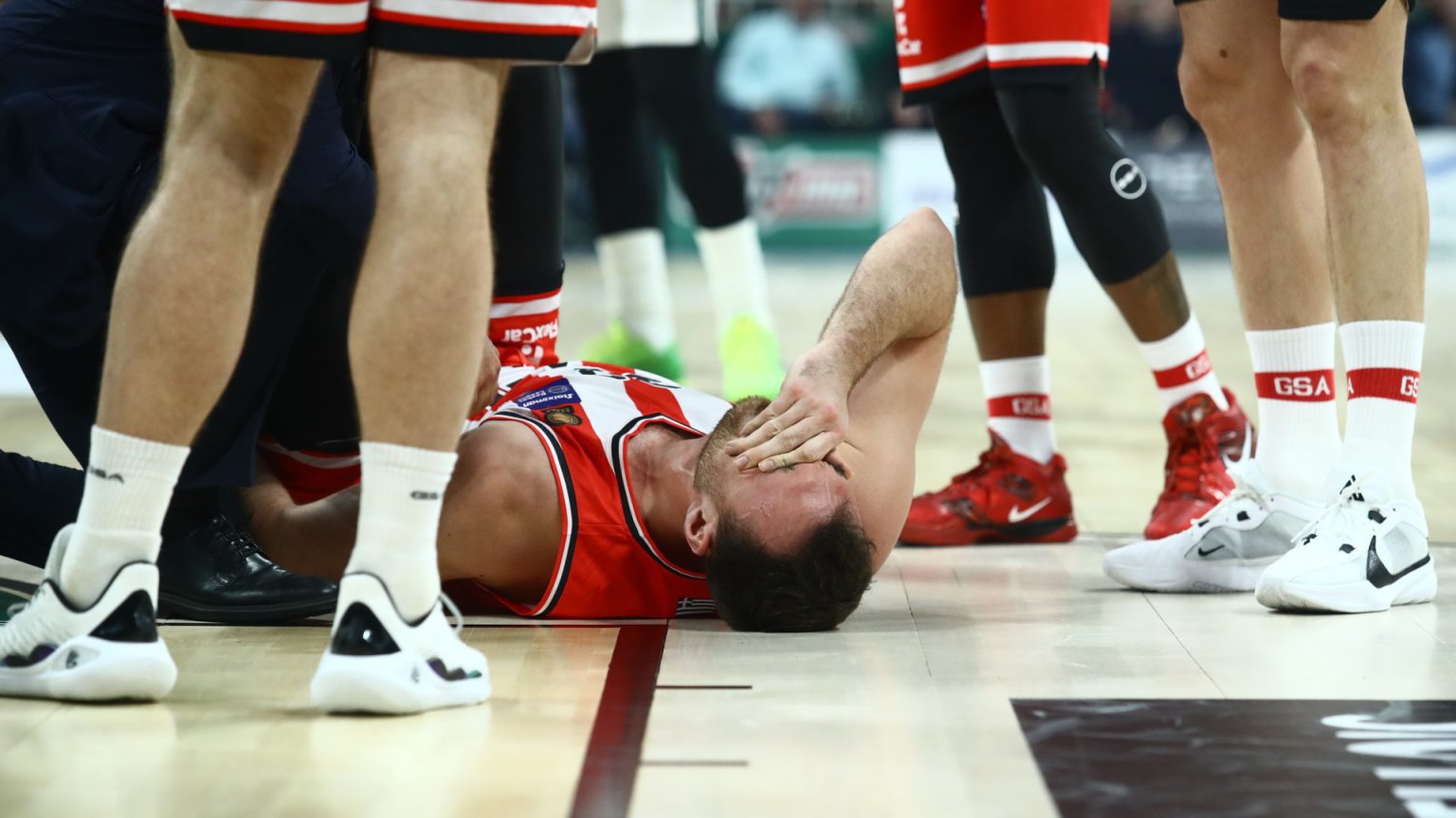 Ο Σέρβος σέντερ στάθηκε εξαιρετικά άτυχος, καθώς, στο ξεκίνημα της τρίτης περιόδου, στραβοπάτησε πάνω στον Παπανικολάου, στην προσπάθεια του να επιστρέψει στην άμυνα. Ο Μιλουτίνοβ έπεσε σφαδάζοντας στο παρκέ, για να αποχωρήσει υποβασταζόμενος στον πάγκο και στην συνέχεια στα αποδυτήρια.