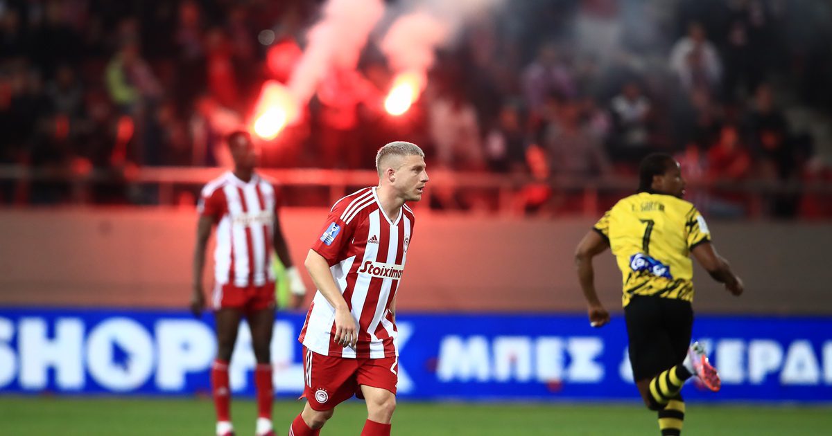 Στο 35’ ο Ολυμπιακός έφτασε πολύ κοντά και σε ένα δεύτερο τέρμα, με τον Φορτούνη να τροφοδοτεί τον Μπιέλ, αυτός να κάνει το φαλτσαριστό σουτ από το ύψος της μεγάλης περιοχής, να βλέπει, όμως, την μπάλα να μην βρίσκει στόχο.