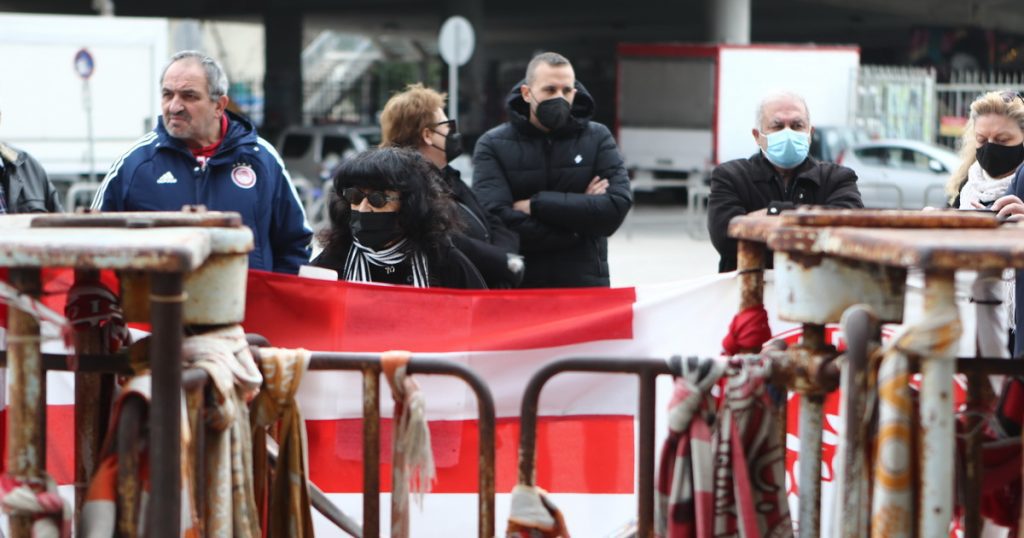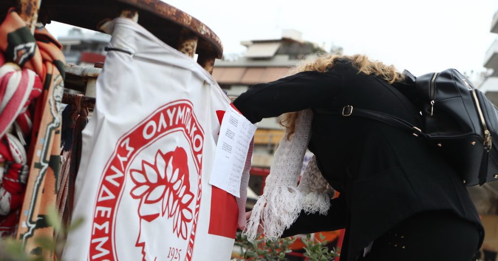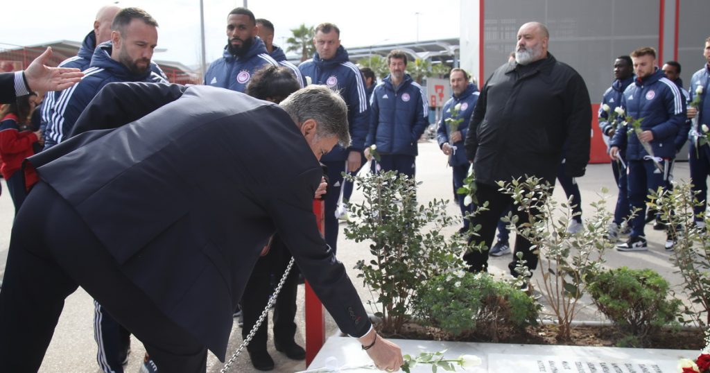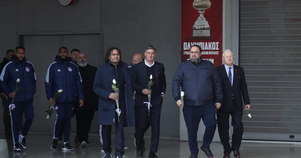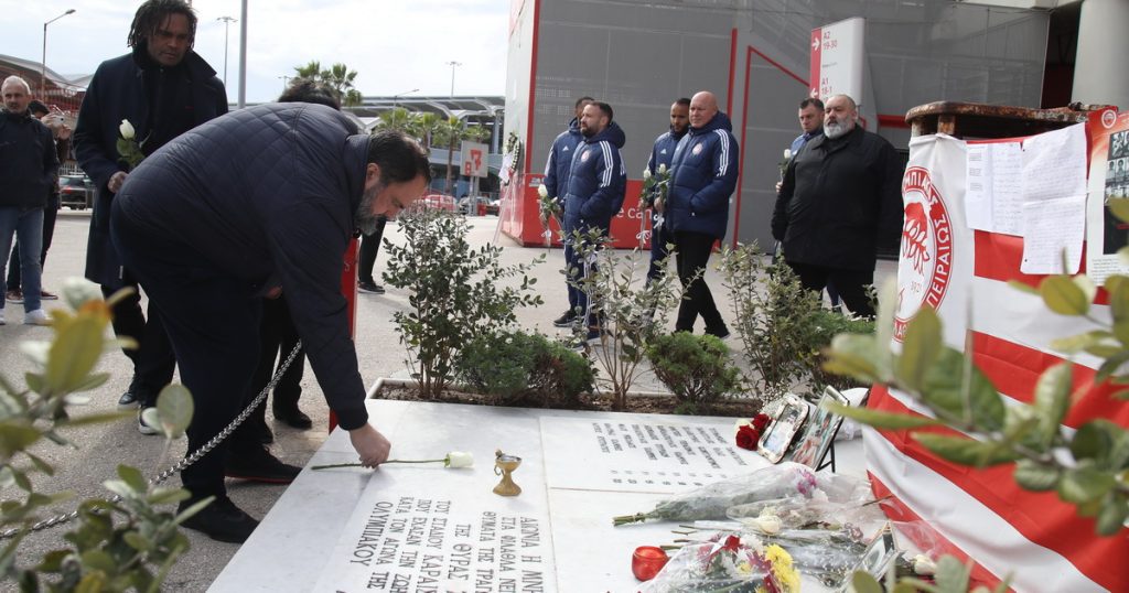 Σύσσωμη η αποστολή του Ολυμπιακού βρέθηκε στο Στάδιο Καραϊσκάκη για να αποτίσει φόρο τιμής στα αδικοχαμένα θύματα της Θύρας 7.