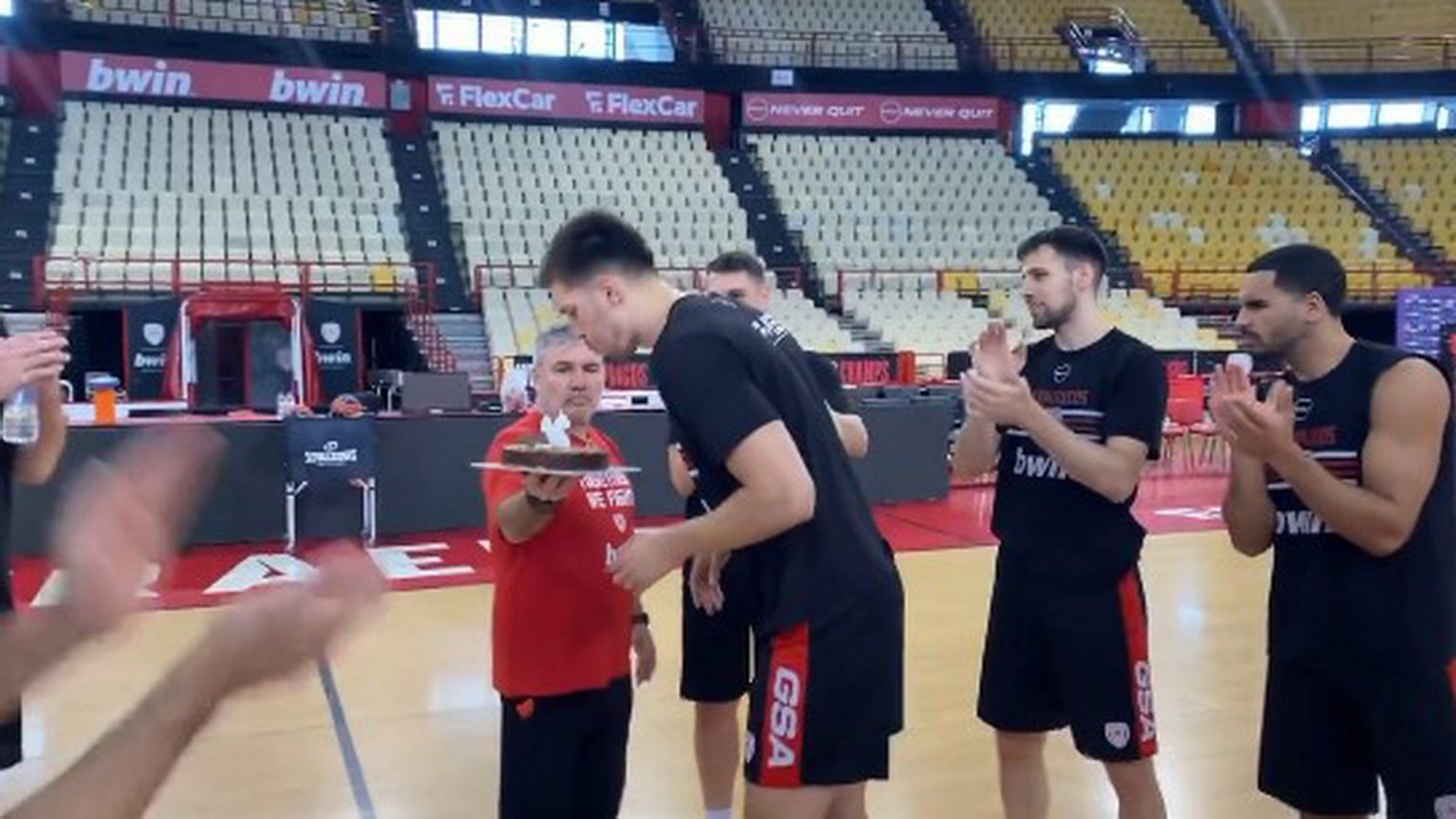Φυσικά δεν έλειπε και η… καθιερωμένη τούρτα, με τους συμπαίκτες του Πετρούσεωβ να του τραγουδο΄ύν και το απαραίτητο γενέθλιο τραγούδι.