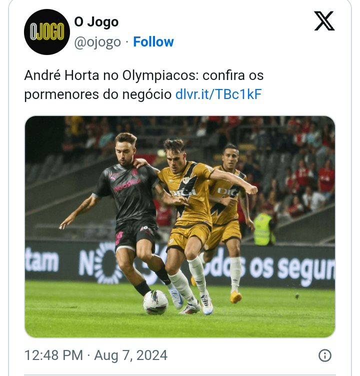 Άκρως θετικές είναι οι εξελίξεις για τον Ολυμπιακό αναφορικά με την περίπτωση του Αντρέ Ορτα αφού σύμφωνα με ρεπορτάζ της “O’ Jogo”, οι ερυθρόλευκοι ήρθαν σε συμφωνία με την Μπράγκα για την απόκτηση του Πορτογάλου μέσου με μεταγραφή.