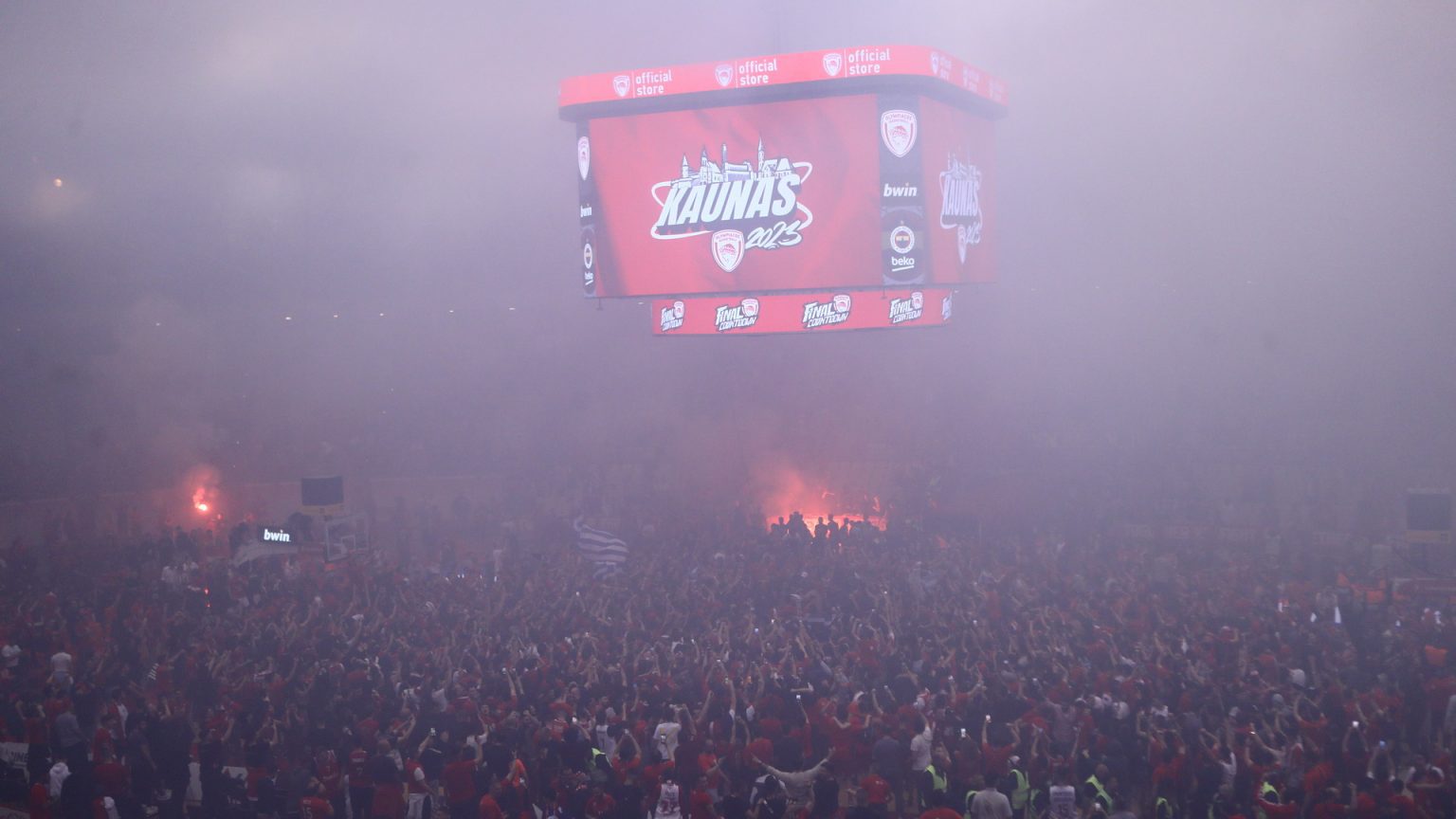 Σε ατελείωτο γλέντι εξελίχθηκαν τα τελευταία δευτερόλεπτα του Game 5 ανάμεσα στον Ολυμπιακό και την Φενέρμπαχτσε, με την τελευταία κόρνα της γραμματείας να δίνει το… έναυσμα για το «ερυθρόλευκο» πάρτι.