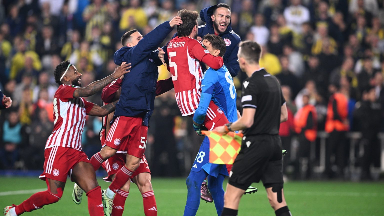 «Μια τεράστια πρόκριση, ακόμη μια χρυσή σελίδα στο βιβλίο της ιστορίας του Θρύλου! Η ΚΑΕ ΟΛΥΜΠΙΑΚΟΣ συγχαίρει όλα τα μέλη του ποδοσφαιρικού τμήματος για την πρόκριση στις 4 καλύτερες ομάδες του Europa Conference League για πρώτη φορά στην ιστορία του Συλλόγου» αναφέρει η ανάρτηση των «ερυθρόλευκων» στα social media.