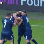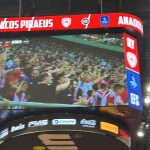 Στο 33’ ο Ολυμπιακός άνοιξε το σκορ όταν ο Κώστας Φορτούνης σε μία προσωπική ενέργεια αφού στριφογύρισε, έφερε την μπάλα μπροστά του και με ένα δυνατό σουτ έστειλε την μπάλα εκεί όπου δεν μπορούσε να αντιδράσει ο Αρεολά για το 1-0.