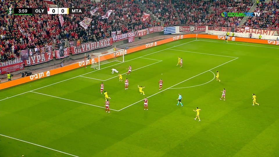 Ο Ολυμπιακός δέχθηκε την ψυχρολουσία μόλις στο 5’ όταν η Μακάμπι βγήκε στην κόντρα με την μπάλα να περνάει κάτω από τα πόδια του Έσε και τον Ζάχαβι να μην δυσκολεύεται να σκοράρει για το 0-1.