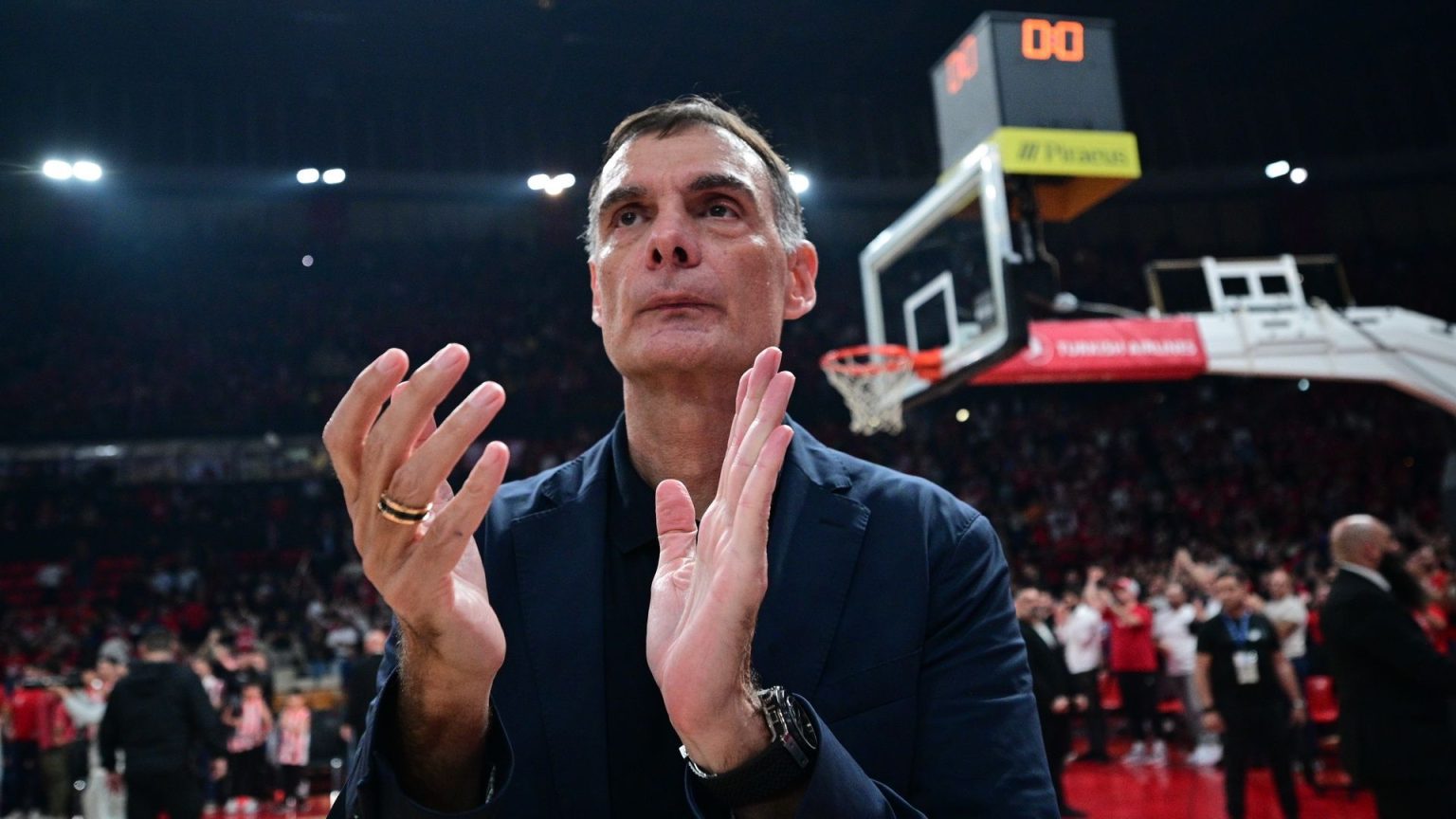 Ο κόουτς Γιώργος Μπαρτζ΄ωκας ετοιμάζει τη σκακιέρα του για τον τρίτο αγώνα των playoffs απέναντι στη Ρεάλ Μαδρίτης.»