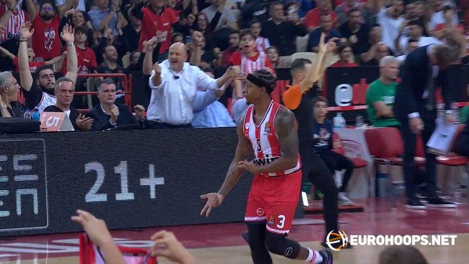 Η εμφάνιση του Αϊζέια Κάνααν στη νίκη (89-72) του Ολυμπιακού (6-4) επί της Ζαλγκίρις Κάουνας (4-6) στο ΣΕΦ για τη δέκατη αγωνιστική της Ευρωλίγκας.