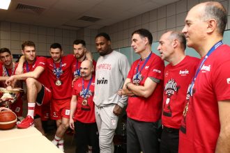 Στιγμές χαράς για τους παίκτες του Ολυμπιακού μετά από την κατάκτηση του…