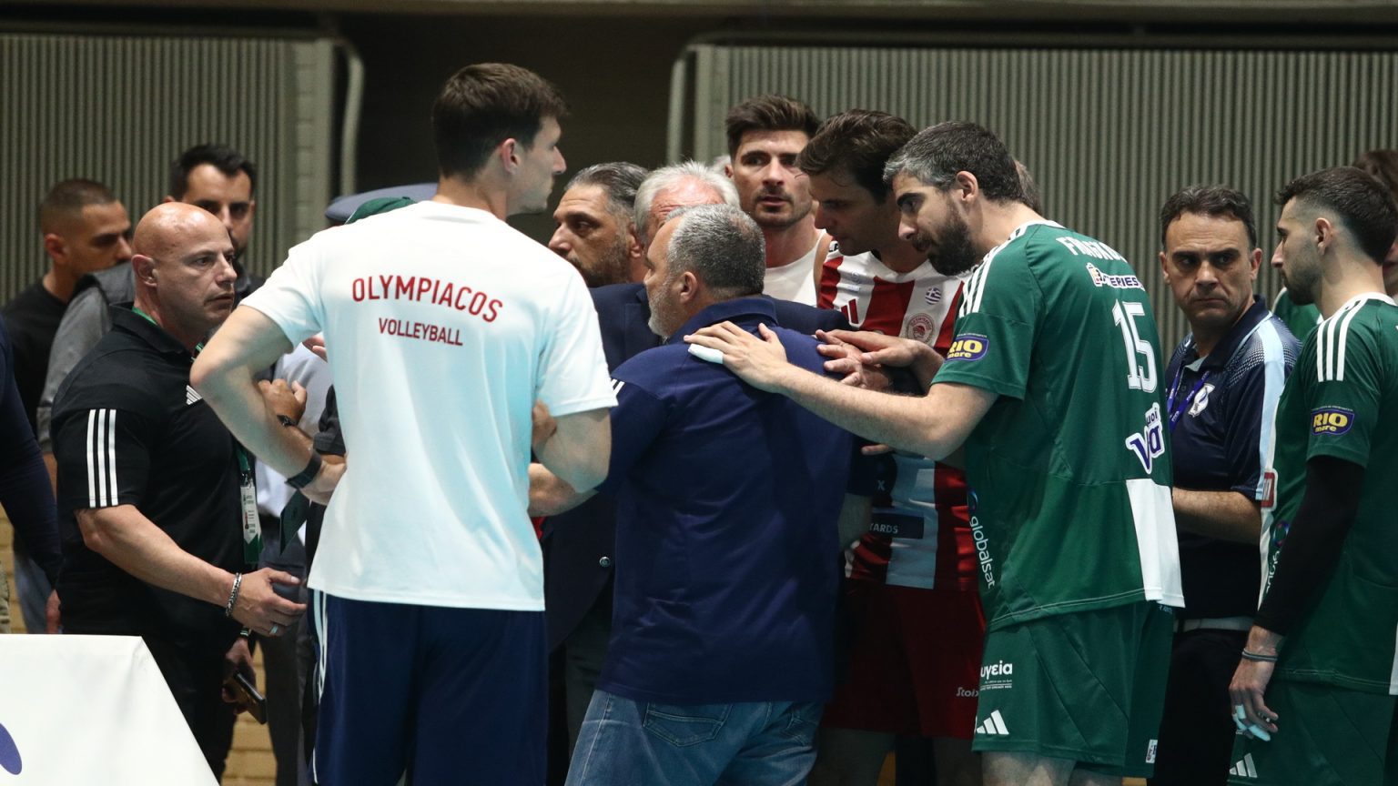 Συγκεκριμένα, οι άνθρωποι της διοίκησης και τα μέλη της αποστολής του Ολυμπιακού, δέχθηκαν επίθεση από τύπους που δεν είχαν καμία δουλειά περιμετρικά του τάραφλεξ, στο ξεκίνημα του δεύτερου σετ, κάτι που είχε ως αποτέλεσμα την προσωρινή διακοπή της αναμέτρτησης.