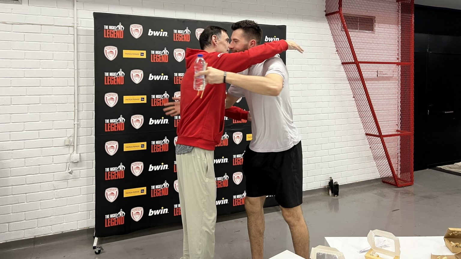 Το κλίμα στο «ερυθρόλευκο» στρατόπεδο ήταν εξαιρετικό, με χαρακτηριστική την αγκαλιά του Γιώργου Μπαρτζώκα με τον Άλεκ Πίτερς, με τους δύο να δίνουν, με αυτόν τον χαρακτηριστικό τρόπο, την δική τους απάντηση σε όσα ειπώθηκαν μετά το περιστατικό, με πρωταγωνιστές τους δύο άνδρες, στο παιχνίδι πρωταθλήματος με το Περιστέρι.