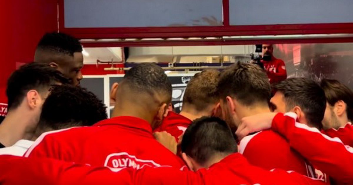 Το καθιερωμένο τελετουργικό δεν θα μπορούσε να λείψει από το «αιώνιο» ντέρμπι, με τον Σάσα Βεζένκοβ να μιμείται τον Κριστιάνο Ρονάλντο και με το χαρακτηριστικό «σίουυυ» να δίνει το σύνθημα στους συμπαίκτες του, πριν την είσοδο της ομάδας στο παρκέ του ΣΕΦ.
