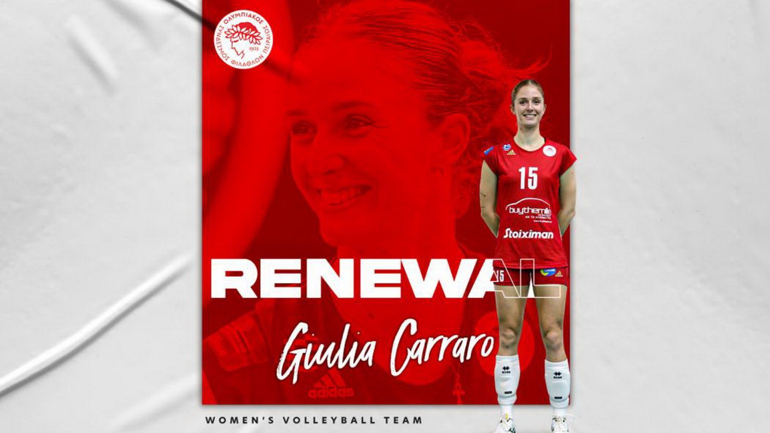 Κάτοικος Πειραιά θα παραμείνει και την νέα σεζόν η Τζούλια Καράρο, καθώς ο Ολυμπιακός ανακοίνωσε την ανανέωση της συνεργασίας του με την Ιταλίδα πασαδόρο.