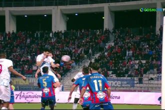 Στο 57’ μετά από σέντρα, ο Μωραϊτης βρίσκει την μπάλα με το…