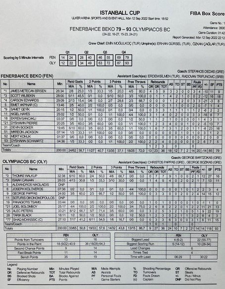 Σε παράσταση για ένα ρόλο μετέτρεψε ο Ολυμπιακός το δεύτερο φιλικό του στην Κωνσταντινούπολη, απέναντι στην Φενέρμπαχτσε. Μετά την νίκη του Σαββάτου (10/9), στο πρώτο – κεκλεισμένων των θυρών – φιλικό παιχνίδι, οι «ερυθρόλευκοι το… ξανάκαναν, αυτή τη φορά μπροστά στο κοινό των Τούρκων και μάλιστα με χαρακτηριστική άνεση, όπως δείχνει το τελικό 79-93.