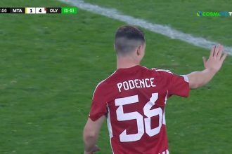 Μόλις στο 10’ ο Ολυμπιακός άνοιξε το σκορ όταν ο Ποντένσε με…