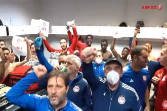 Οι παίκτες του Ολυμπιακού πανηγύρισαν την μαθηματική κατάκτηση του τίτλου μέσα στη…