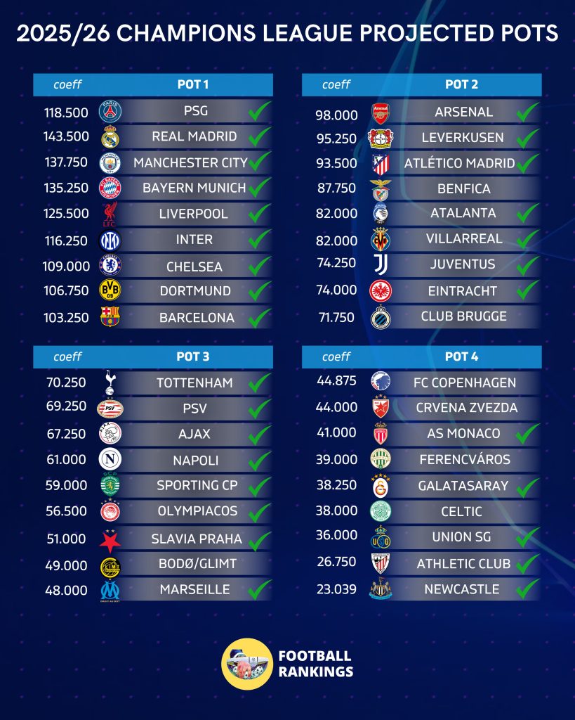 Όποιος και να είναι ο συνδυασμός των ομάδων που θα προκριθούν, ο Ολυμπιακός θα βρίσκεται στο τρίτο γκρουπ δυναμικότητας, με το ranking του να μην του δίνει τη δυνατότητα – προς το παρόν – να μεταπηδήσει στο δεύτερο, αλλά παράλληλα να του δίνει και την ασφάλεια ότι δεν πρόκειται να «υποβιβαστεί» στο τέταρτο.