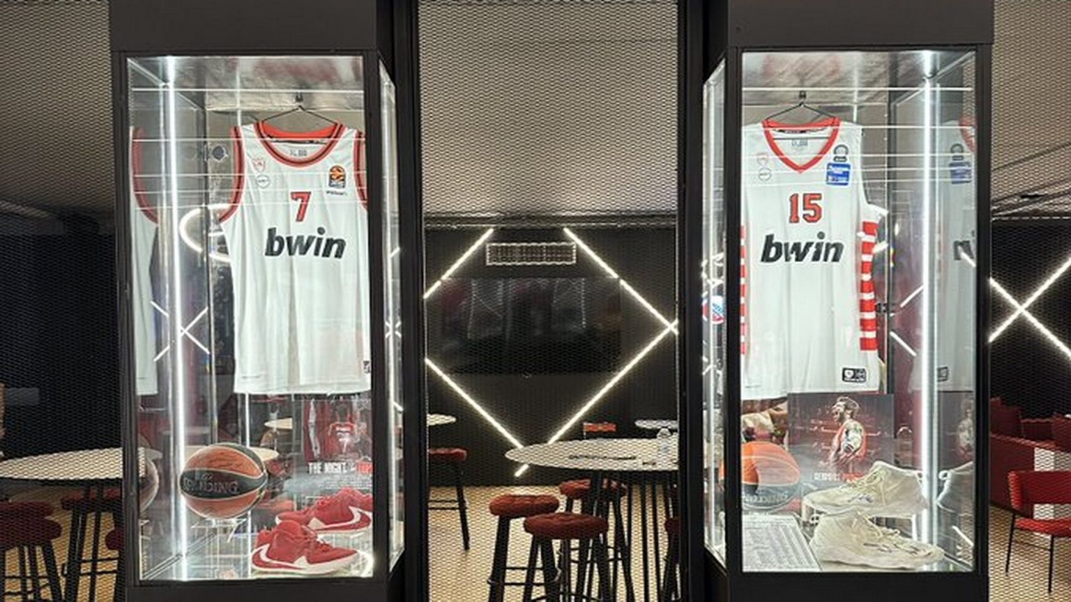 Έτσι, όπως φαίνεται και από την ανάρτηση του Sports Director της ΚΑΕ Ολυμπιακός, Χρήστου Μπαφέ, οι φανέλες των Σπανούλη και Πρίντεζη, καθώς και τα παπούτσια τους, αλλά και δύο μπάλες, έχουν τοποθετηθεί σε ειδική προθήκη στην είσοδο του VIP Lounge του