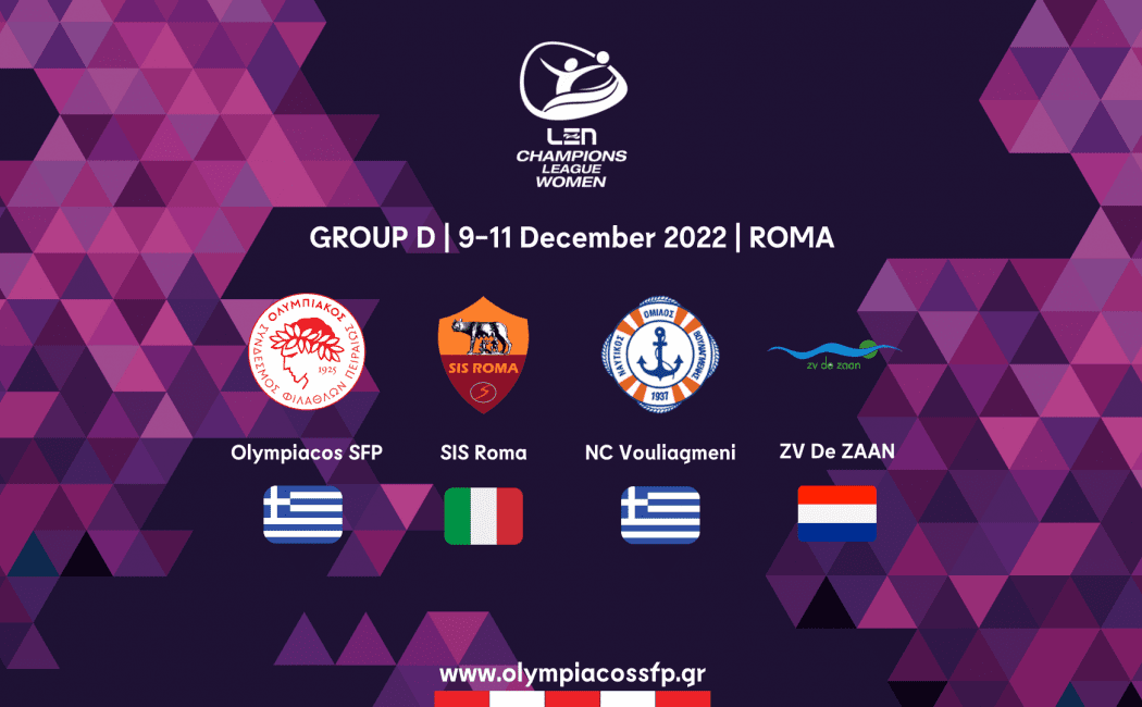 Τους αντιπάλους της στη φάση των ομίλων του Champions League έμαθε την Δευτέρα (21/11) η ομάδα πόλο Γυναικών του Ολυμπιακού. Οι πρωταθλήτριες Ευρώπης κληρώθηκαν στον Δ’ όμιλο της διοργάνωσης, που θα διεξαχθεί στη Ρώμη (9-11/12), με την Ρόμα (Ιταλία), τον ΝΟ Βουλιαγμένης και την ZV De Zaan (Ολλανδία).