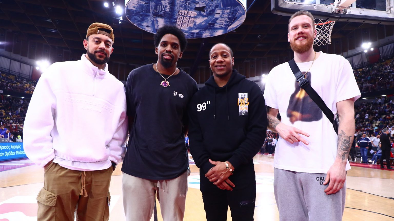 Ο φωτογραφικός φακός απαθανάτισε τους Σακίλ ΜακΚίσικ, Ίγκνας Μπραζντέικις, Νάιτζελ Γουίλιαμς – Γκος και Αϊζάια Κάνααν, να παρακολουθούν τους συμπαίκτες τους στον Ολυμπιακό, ντυμένους στα γαλανόλευκα, ενώ στο ΣΕΦ βρίσκονται και οι Άλεκ Πίτερς, Μόουζες Ράιτ και Μουστάφα Φαλ, με τον Γάλλο σέντερ να… γιορτάζει τα γενέθλια του στο φαληρικό κλειστό.