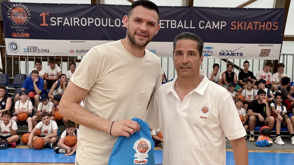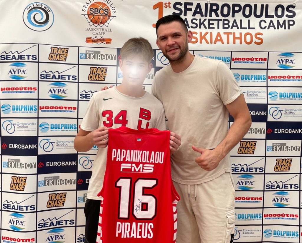 Συνεχίζεται το «1st Sfairopoulos Basketball Camp Skiathos», με τον αρχηγό του Ολυμπιακού και της Εθνικής ομάδας, Κώστα Παπανικολάου, να προκαλεί ενθουσιασμό με την παρουσία του σε όλα τα νέα παιδιά.