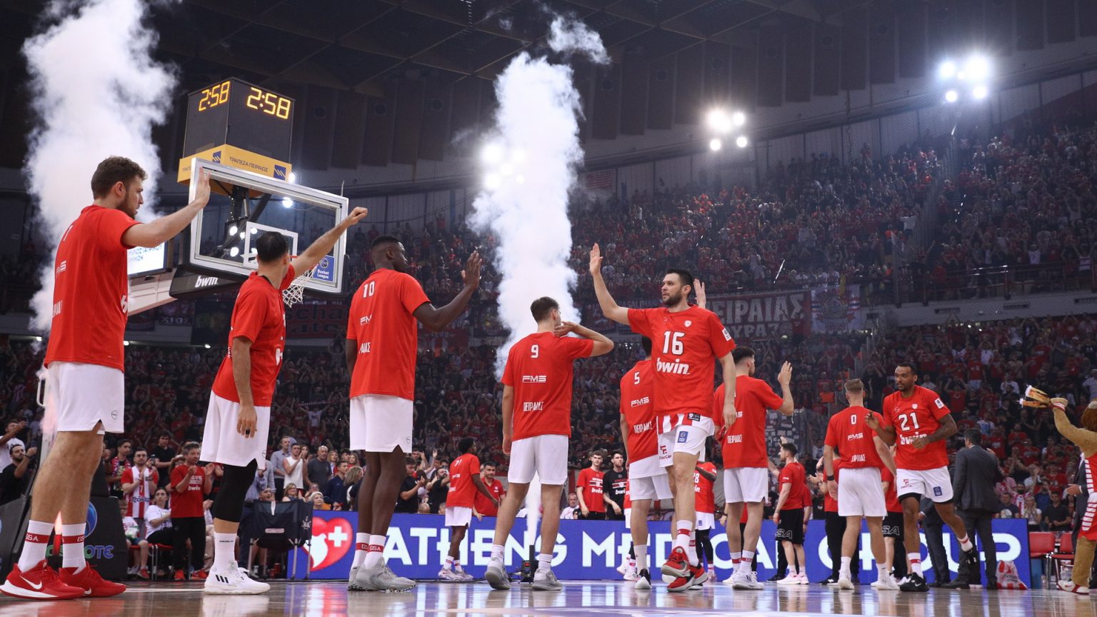 Ολυμπιακός και Παναθηναϊκός συγκρούονται στην… αρένα του ΣΕΦ, με το γήπεδο να… παίρνει φωτιά, αρχικά από αποδοκιμασίες, κατά την διάρκεια της παρουσίασης των “πράσινων” και στην συνέχεια από τραγούδια, στην παρουσίαση των παικτών του Γιώργου Μπαρτζώκα.