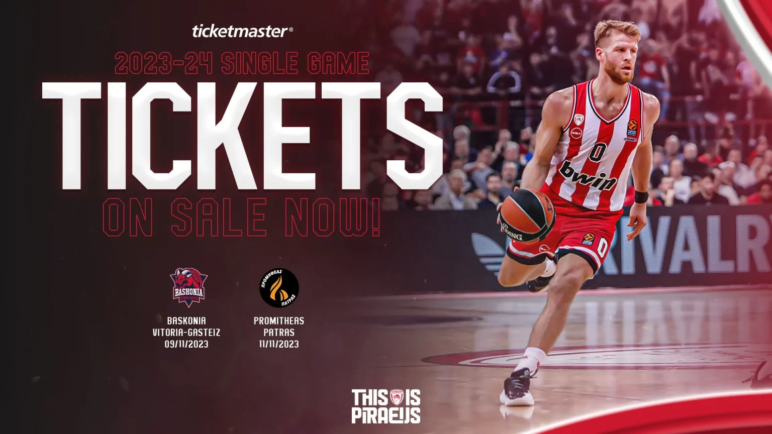 Η Κ.Α.Ε. ΟΛΥΜΠΙΑΚΟΣ ανακοινώνει ότι για τον αγώνα Euroleague με την BASKONIA VITORIA GASTEIZ (09/11/2023, με ώρα έναρξης 19:15) και για τον αγώνα Ελληνικού Πρωταθλήματος Stoiximan Basket League 2023 – 2024 με τον ΠΡΟΜΗΘΕΑ ΠΑΤΡΩΝ 11/11/2023, με ώρα έναρξης 20:15) η διάθεση των εισιτηρίων πραγματοποιείται ως εξής: