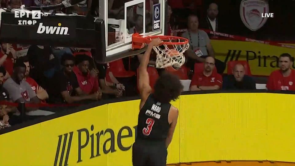 Τα κάνει όλα ο Ουόρντ για τον Ολυμπιακό | Δίνει ασίστ, κλέβει την μπάλα και καρφώνει στον αιφνιδιασμό σε διαδοχικές φάσεις