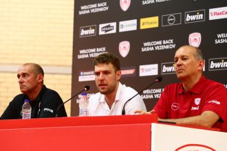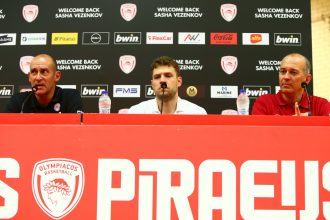 Ο Ολυμπιακός παρουσίασε τον Σάσα Βεζένκοβ, με τους Παναγιώτη και Γιώργο Αγγελόπουλο…