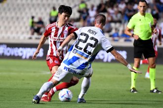 Στο 29’ ο Ολυμπιακός ισοφάρισε όταν ο Χουάνγκ, μετά από πάσα του…
