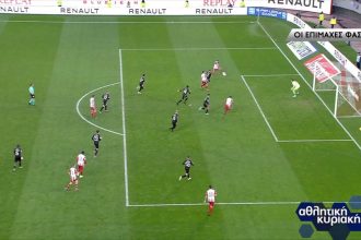 Στο 35’ μετά από εκτέλεση κόρνερ του Χάμες, ο Παπασταθόπουλος πήρε την…