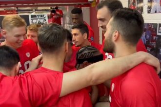 Ερυθρόλευκη αγκαλιά πριν την είσοδο στο παρκέ για το ντέρμπι με τον Παναθηναϊκό (vid)