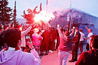 Οι φίλαθλοι του Ολυμπιακού επιφύλαξαν τα ξημερώματα αποθεωτική υποδοχή στην αποστολή της…
