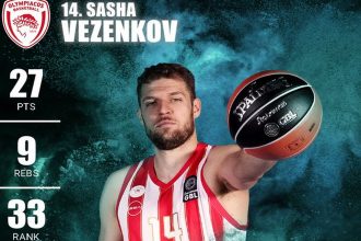 Ακόμα μία διάκριση για τον φόργουορντ του Ολυμπιακού. Ο Σάσα Βεζένκοβ ήταν…