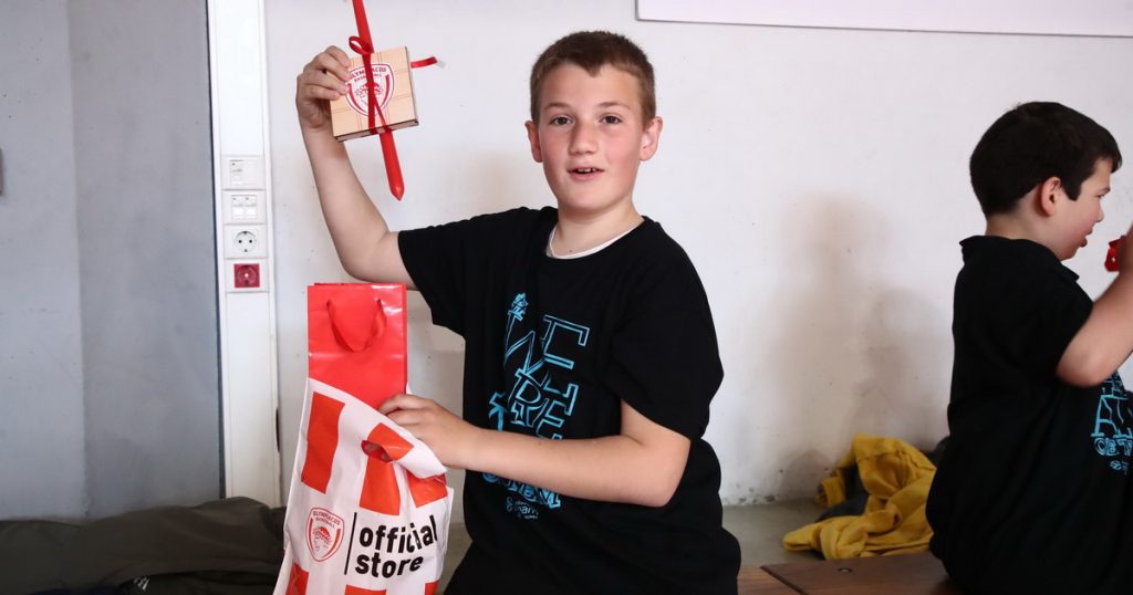 Εκτός από τα διασκεδαστικά και πάντα εκπαιδευτικά παιχνίδια που είχαν ετοιμάσει οι προπονητές μας, ο «ερυθρόλευκος» πρεσβευτής του προγράμματος, Σάσα Βεζένκοβ, έκανε εμφάνιση-έκπληξη και μοίρασε σε όλους από μία λαμπάδα και ενα συλλεκτικο παιχνιδι Τριλιζα (πρόκειται το νεο προιον κοινωνικης ευθυνης απο το Official Store!)