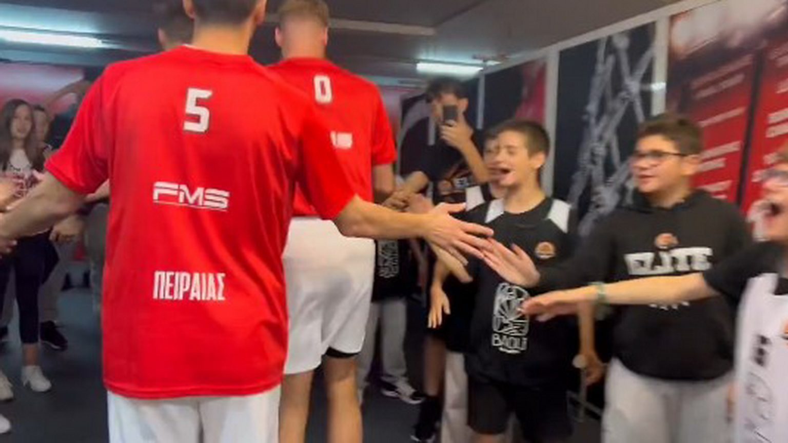 Το καθιερωμένο τελετουργικό των παικτών του Ολυμπιακού δεν θα μπορούσε να λείψει από την έναρξη των Play Offs της Basket League, μόνο που αυτή τη φορά, οι «ερυθρόλευκοι» είχαν στο πλευρό τους και τα παιδιά της Ακαδημίας του Βόλου, που είχαν μιμηθεί την… ιεροτελεστία των Πειραιωτών.