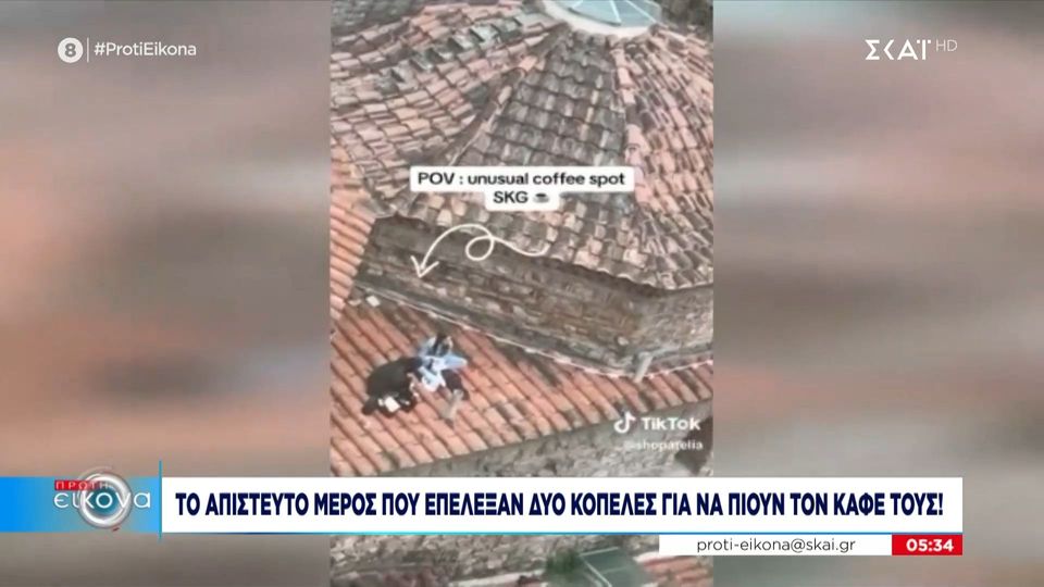 Δύο κορίτσια στη Θεσσαλονίκη επέλεξαν ένα ασυνήθιστο μέρος για να πιουν τον καφέ τους. Οι δύο κοπέλες ανέβηκαν στη στέγη του Γιαχουντί Χαμάμ, ενός λουτρού της Οθωμανικής περιόδου, που χρονολογείται από τον 16ο αιώνα και βρίσκεται στη γωνία των οδών Βασιλέως Ηρακλείου και Φραγγίνη, στα γνωστά Λουλουδάδικα.
